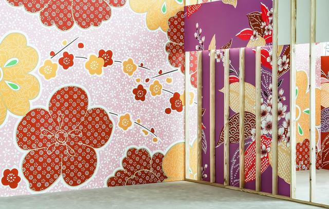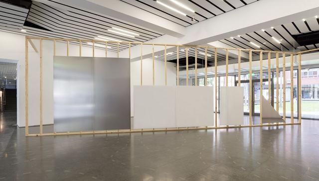 林明弘,〈展位〉,2019/2021,乳膠漆、木板、松木條, 350 x 732 cm,每一面牆/image credit:藝術家自藏