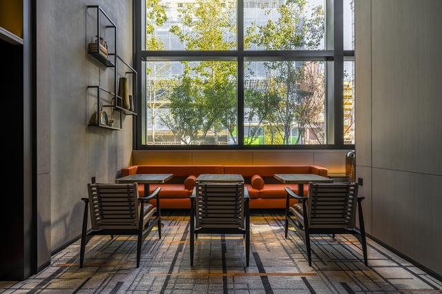CCD也從膠卷的物理特性延伸出設計語言「框架Frames」和「層次Layers」來貫穿整個室内空間。一樓挑高八米的空間感呼應這裡百年前曾為倉庫的歷史,大量木頭和金屬材質用以遙想日治時期樟樹林和鐵工所的存在,大片的落地玻璃將室外的景觀公園和室內台北旅人們溫暖的家連結,窗明几淨、光線穿透,完美揉合自然與人為建構;屏風動態的曲線與流動的透光是電影膠卷的形狀、平面與立面的層次重疊和空間中的框架,呈現出的是一張張美好時刻、精心保存下來的回憶。