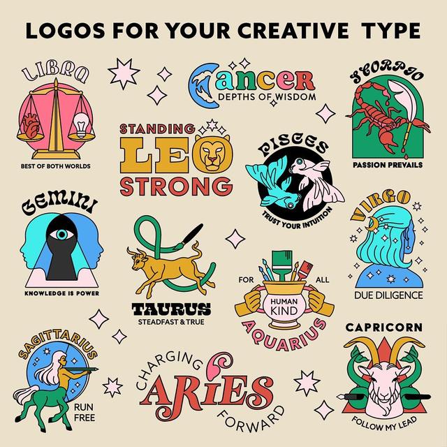 首先,先來回顧 2 月份的星座。Berlin Michelle 將其如 Logo 的模樣,除了融入每個星座的特點之外,更加入一句經典 Quote,像是:雙子座「knowledge is power」(知識就是力量)、金牛座「Steadfast and True」(堅定而真實)、天秤座「Best of both world」(兩全其美)等等,能作為提點也能是特質的展現。
