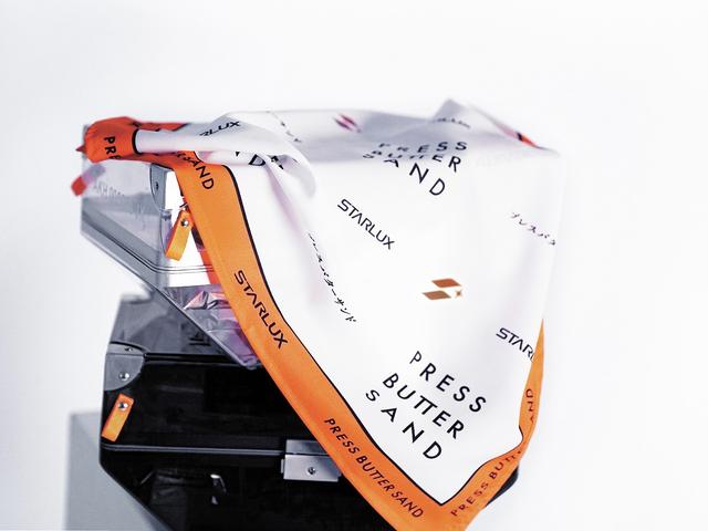 除了夾心餅外,呼應「星宇箱STARBOX PROJECT RE.」精神,隨箱附有限量打造的「RESET n’GO 宣言掛帶」及「未來萬花筒」。宣言掛帶依外箱款式分別搭配「永恆銀」或「原點黑」,以霧光掛鉤承載2021年所有負壓;充滿潮流趣味的「未來萬花筒」,透過光學折射出萬變視野,造就令人驚喜的視覺呈現,引領大家以全新視角重新感受世界的美好。除此之外,購買雙生組合款還可獲得由Press Butter Sand操刀設計的雙品牌聯名「PBS805CSJX印花方巾」一條,日系風格、別緻優雅,全球限量1000條。