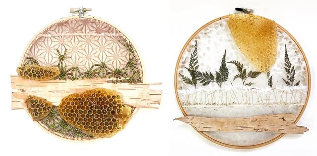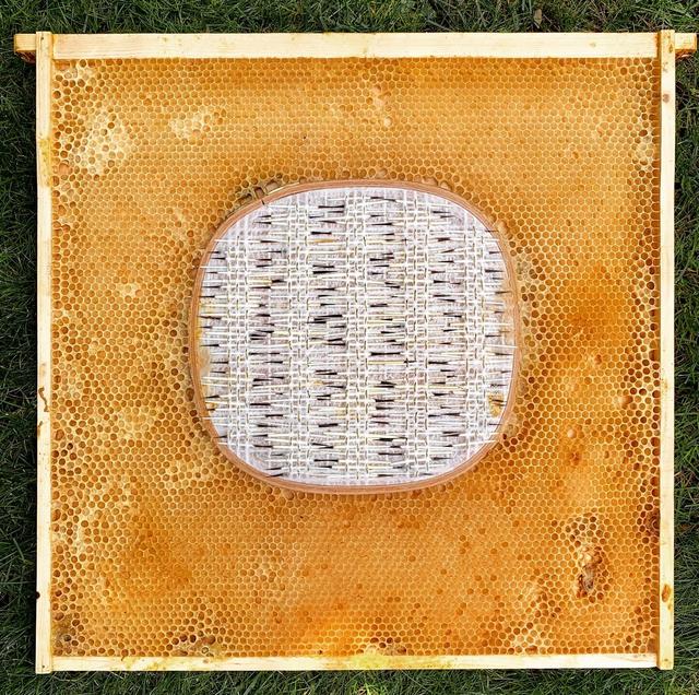 當加拿大藝術家Ava Roth在她的繡框上,縫上最後一針的馬毛或豪豬剛毛,將木框放入蜂箱,就意味著接下來將由蜂箱內的蜜蜂接手後續創作工作,任由蜂蠟包裹住她的多媒材混合體刺繡,也讓人引頸期待著這樣的「黑箱」作業,會創作出怎樣美麗的有機藝術品!