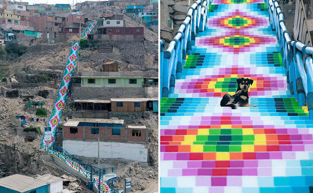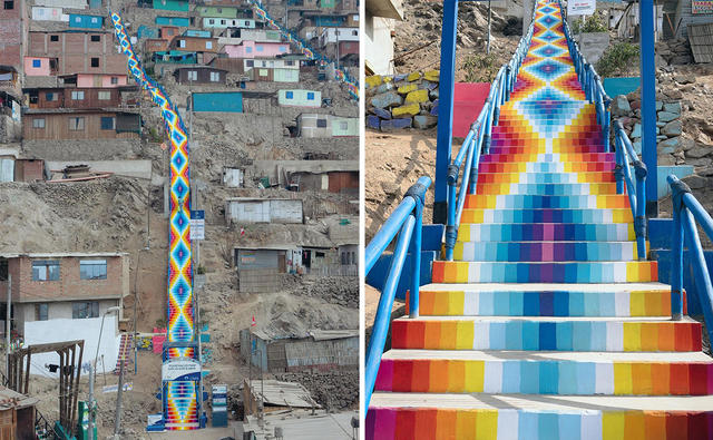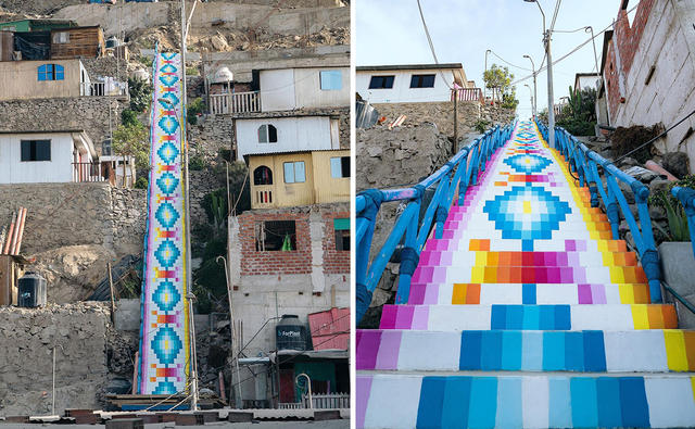 有關破窗理論的研究顯示,明顯的犯罪、反社會的行為和騷亂會創造出鼓勵進一步犯罪和動盪的城市環境,因此維護良好的社區秩序與環境,有助於減少故意破壞。有鑑於此,秘魯藝術家Xomatok透過生動、清新色彩,在秘魯首都利馬社區牆壁、樓梯和廢棄建築物上,留下各種獨特圖案,作為幫助低收入社區可持續性發展的方式!