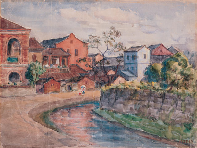 倪蔣懷,《台北李春生紀念館(裏通)》,1929,水彩、畫布,43.4×58.5公分,臺北市立美術館典藏