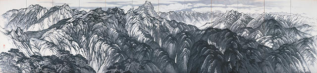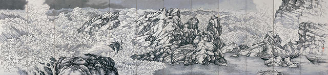 鄉原古統, 《台灣山海屏風──能高大觀》,1930,水墨、紙,173×62公分( 12片),臺北市立美術館典藏。