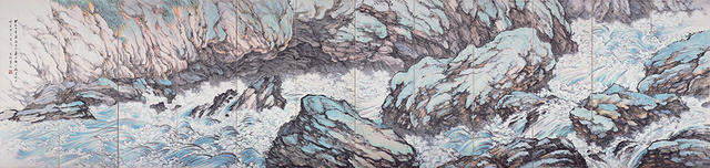 《台灣山海屏風──北關怒潮》,1931,水墨、紙,172.8×62公分( 12片),臺北市立美術館典藏。
