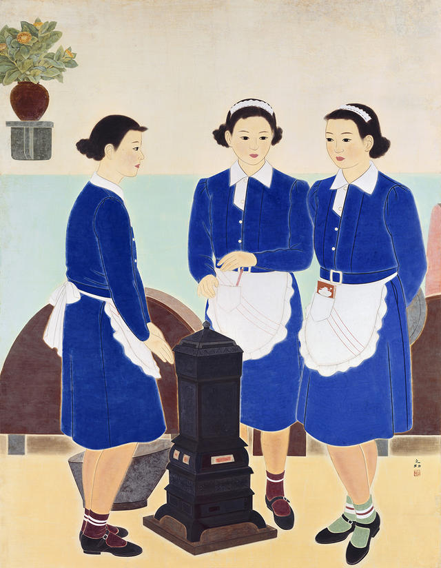 呂鐵州,《後庭》,1931,膠彩、紙,213×174公分,臺北市立美術館典藏。