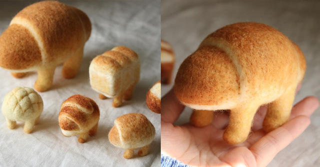 療癒的羊毛氈創作總是會在不知不覺中,抹平人們日常生活的許多煩惱,日本藝術家atelierhatena的羊毛氈作品,則是往奇幻、奇想、奇異的方向發展,用各種長腳的麵包來考驗大家的想像力,殊不知卻不小心開啟了大家「看到可愛事物就會忍不住尖叫」的開關,成功的在羊毛氈創作世界中,開創出另一種怪奇可愛的療癒路線。
