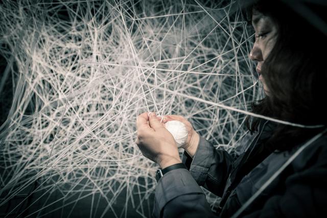 另一個她所想傳達的概念,是「沉默的表達」,她想透過裝置藝術,而不是在公共場合發言,來表達自己,這種方式令人想起了日本人「沉默中之美」的哲學。為了本次展覽,塩田千春與團隊總共使用了160公里長的紗線,為了完美呈現洋裝與雕塑的旋轉效果,她們甚至花了兩年的時間實驗,只為了找到物體的重量、速度與離心力的正確平衡,最後她們用了10多天時間,從Cisternerne天花板開始編織,創造出這個類似迷宮的空間裝置,然而當你迷失其中,感受到的應該不是心慌意亂,而是心領神會。