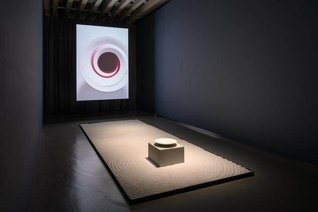 同時凹凸起伏、象徵無限的螺旋,尺度精準而優美的幾何線條反映自然奧秘,形成了物質彼此相遇,不可見的時間在其中靜謐流動的沈思空間。錄像中,沿著螺旋流動的每一個片刻皆提醒著觀者, 時間才是最珍貴的資源,最終極的奢侈品。