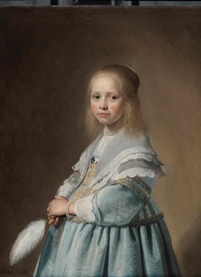 (上)埃爾溫‧奧拉夫<肖像1>,2012碳印照片 22.7*17cm;(下)杰拉德・特.伯爾奇<農民服裝的女孩坐像>,1650~1660,油彩、木板