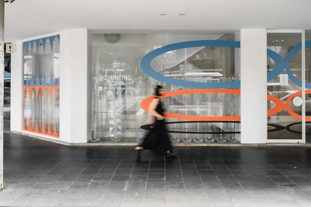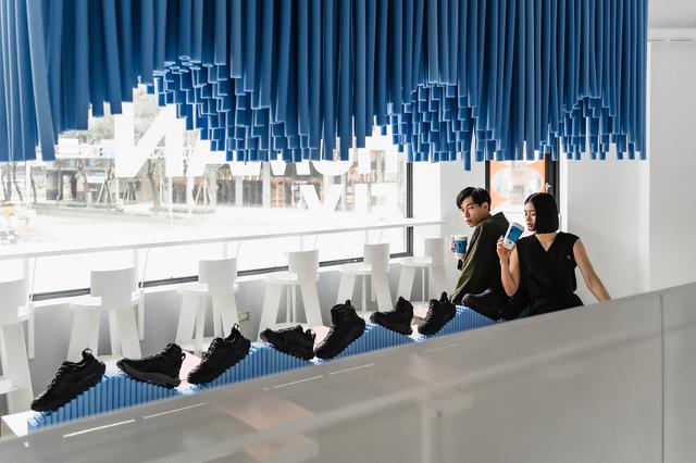 本次合作計畫「BOUNC!NG ZONE」共分為兩大體驗區,由策展團隊「山陽山陰」企劃執行,一進入 CAFE!N 民權門市,即可在 1F 的天井區中與不倒翁式充氣柱緊密相連,具象化的感受 HOKA 鞋底回彈時的緩震作用。