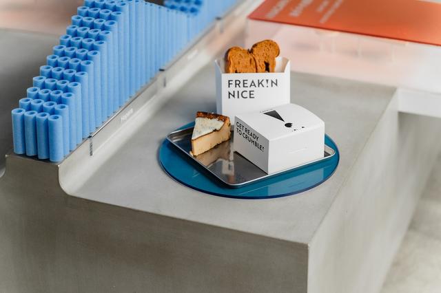 輕食甜點的新選項則以本次合作計畫的視覺主色為研發核心,顏色包含代表 HOKA 上乘飛翔的藍色、彈力與躍動感十足的橘色、和 CAFE!N 品牌色的黑色,藉由顏色特性推出兩款新品項:「蜷尾家監修 泰奶花生吐司」與 CAFE!N 甜點類銷售冠軍的「巴斯克乳酪蛋糕 焦糖新風味」。有別於過往泰奶的甜膩印象,泰奶花生吐司以淡淡的泰式茶香為麵包風味主體,夾層中抹上濃郁花生醬,相輔相成,創造出口感清爽的新體驗;口感軟綿的巴斯克乳酪蛋糕則是 CAFE!N 最受歡迎的蛋糕商品,本次推出全新風貌,加入手工熬煮的焦糖,濃郁的焦糖香甜不膩,讓巴斯克蛋糕多了另一種新選擇。