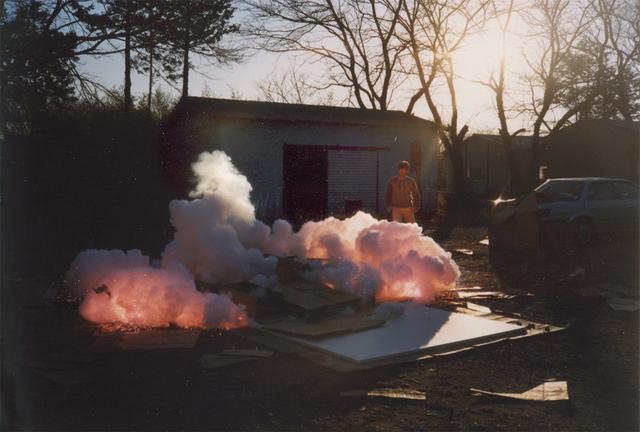 蔡國強《胎動二:為外星人作的計畫第九號》創作現場,1991年。(圖片提供:蔡工作室)
