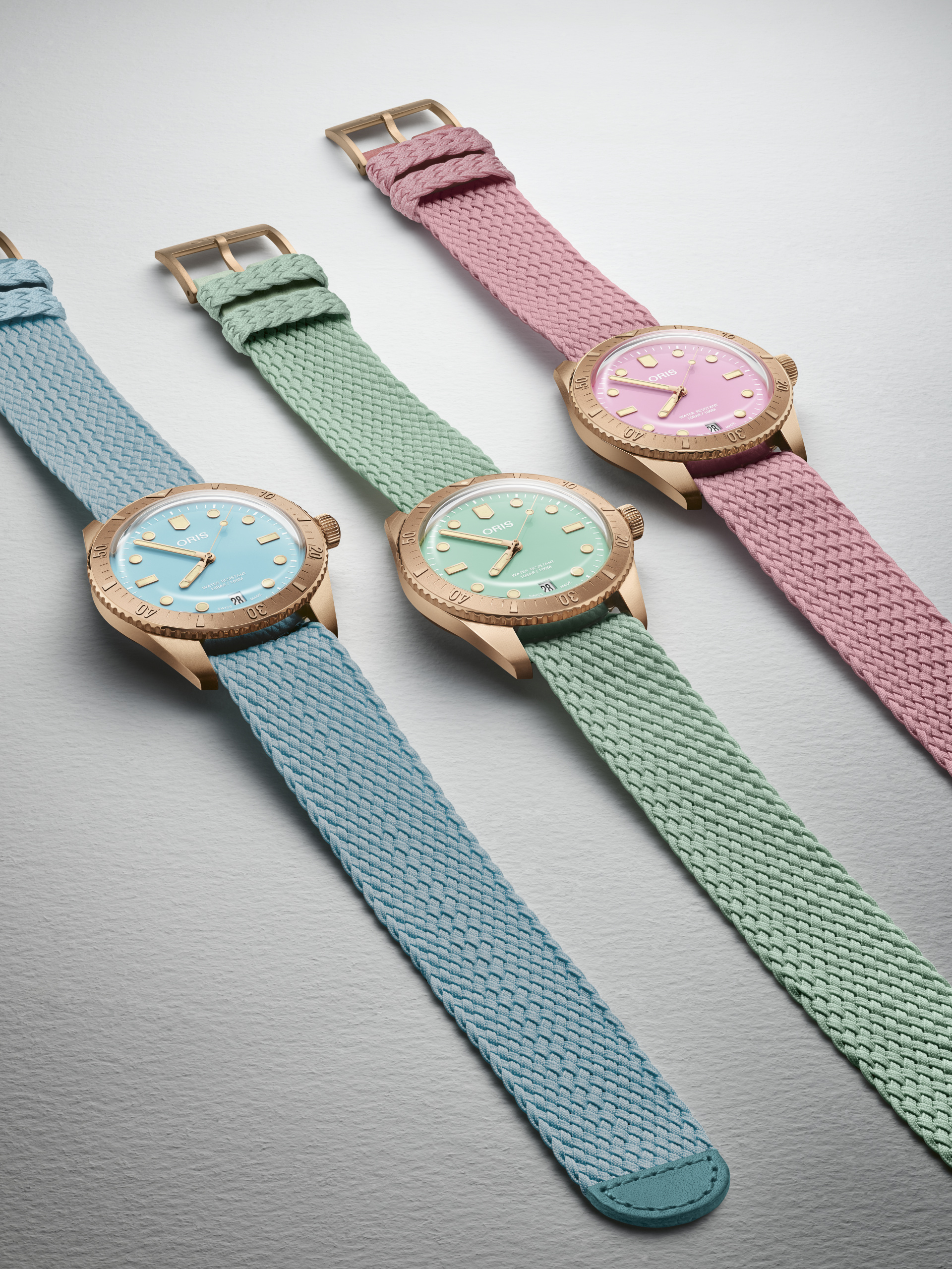 除了搭配「輕鬆一下吧」祝福的科米蛙手錶,另外一款有著天空藍的Divers Sixty-Five棉花糖腕錶,充滿青春活力的色彩彷彿能掃去一切陰霾,使用再生Perlon編織錶帶,貫徹Oris一直以來在永續環境上的堅持,而青銅材質的錶殼,最大特色則是會隨著時間與個人配戴習慣留下時光的痕跡;「再生」與「永恆」兩大看似相悖的主題輕巧地被Oris帶入一只軟綿綿的腕錶中。