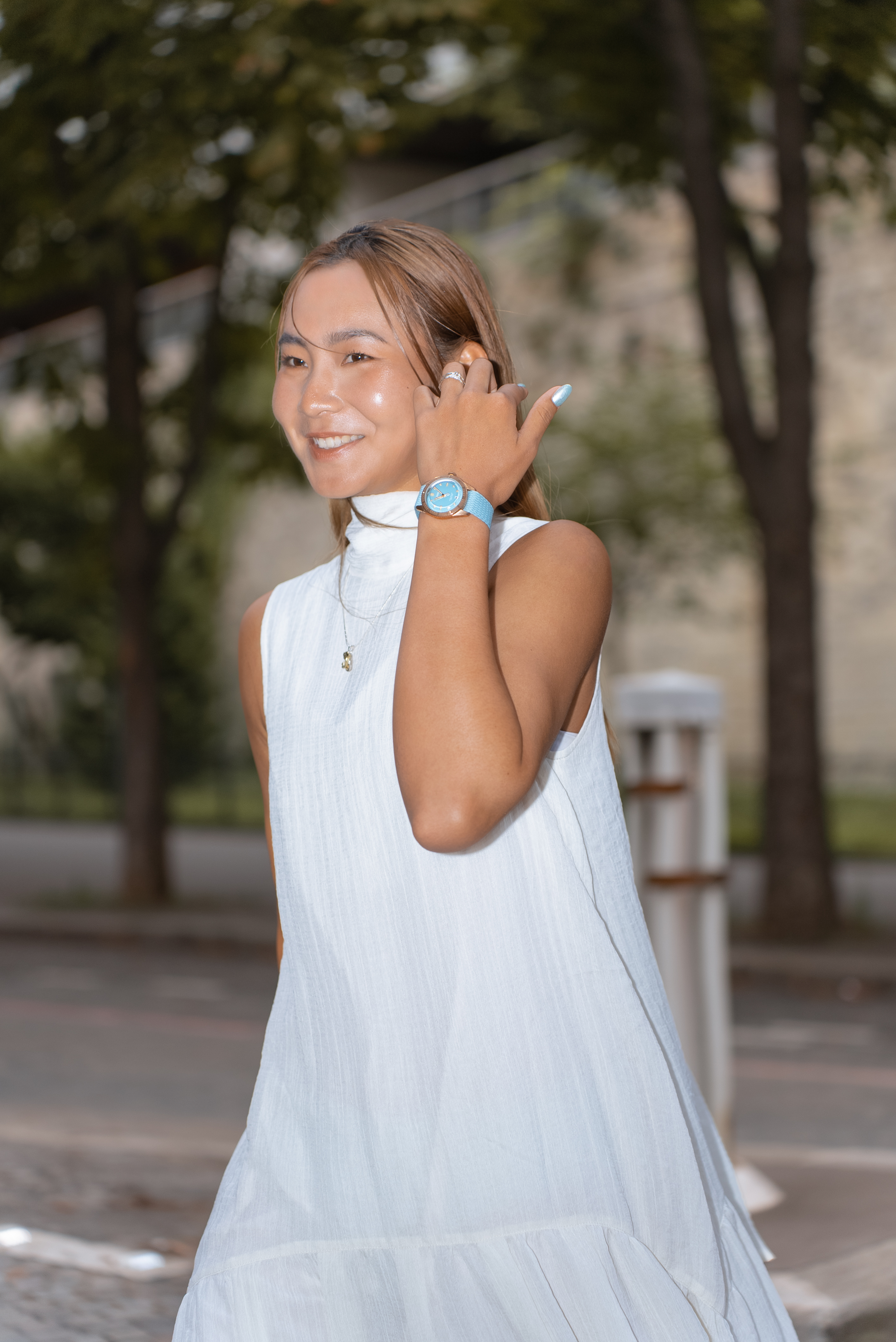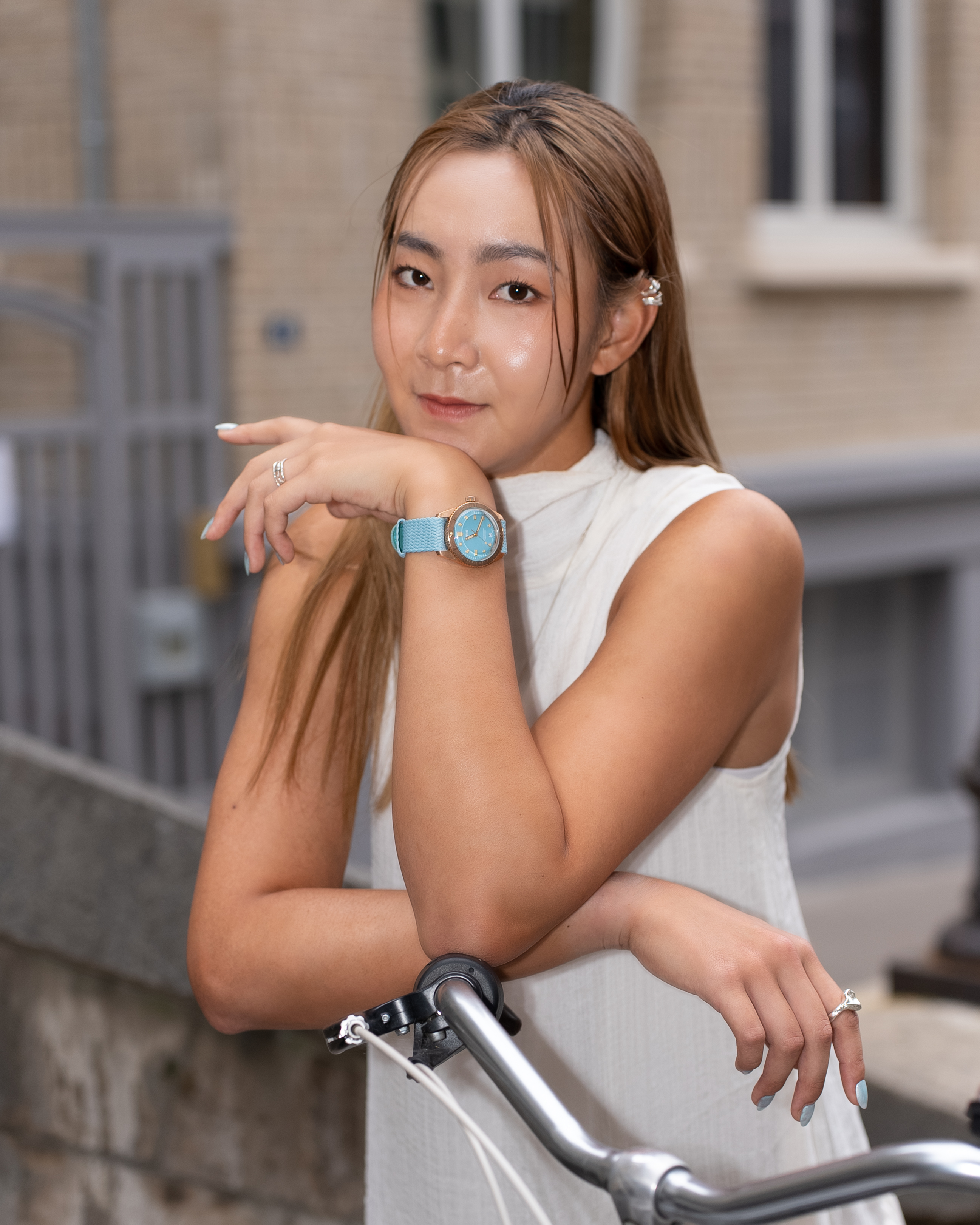 在這次巴黎的拍攝中,曹家宜戴了一只「網球色」錶盤的腕錶,來自瑞士獨立鐘錶品牌Oris,其中ProPilot X系列與科米蛙的聯名款。當然,這只腕錶的錶盤配色靈感來自科米蛙,卻剛好與網球的螢光綠不謀而合,再加上以鈦合金打造的錶殼與鍊帶,輕鬆令手腕毫無負擔,更重要的是…Oris在這款腕錶上加入了一個「輕鬆一下吧」的小巧思;也就是每個月的第一天,六點鐘方向的日期視窗會出現一個科米蛙圖像,這個『科米日』是希望大家不要將生活過得太嚴肅,畢竟談到機械製錶總是讓人感覺嚴謹,而『科米日』的出現,正是要以隱藏埋梗的方式,讓人們在不經意的生活中,想起隨時都可能將一點時光留給自己。