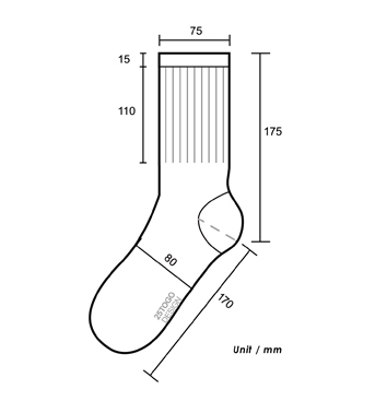 以上為平攤丈量尺寸,僅供參考,每雙襪子因其棉料特性或是在彈性包裝定型的過程中可能產生些微誤差,請以實際商品為主。