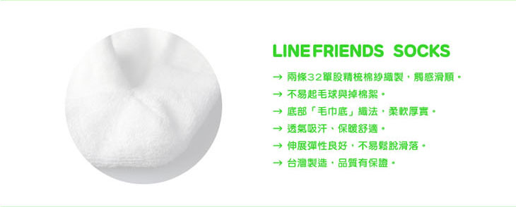LINE FRIENDS 球襪系列攤開時是一雙透氣吸汗的舒適棉襪 ; 捲成圓球收納時,則是一張早已和生活密不可分的LINE FRIENDS 熟面孔,從此坐下、起立、走路、彎腰,雙腳也有好多表情!