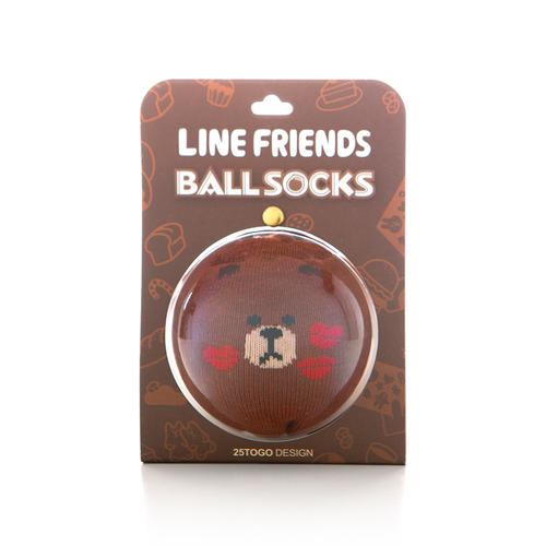 LINE FRIENDS 球襪系列攤開時是一雙透氣吸汗的舒適棉襪 ; 捲成圓球收納時,則是一張早已和生活密不可分的LINE FRIENDS 熟面孔,從此坐下、起立、走路、彎腰,雙腳也有好多表情!