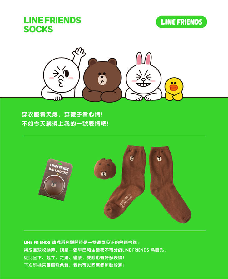 BALL SOCKS_LINE FRIENDS 球襪_熊大一號表情