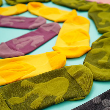 「FOOTPRINT腳印襪」襪底凸起的織紋是一雙動物腳印,在地板上多次來回走動後,腳印圖案會因反覆踩壓而愈顯清晰。襪體為尼龍材質,穿著時涼爽舒適。今天想擁有貓的輕盈踱步,還是配備猛獸的利爪,來吧,穿上腳印襪,勇闖都市叢林!