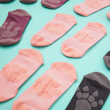 「FOOTPRINT腳印襪」襪底凸起的織紋是一雙動物腳印,在地板上多次來回走動後,腳印圖案會因反覆踩壓而愈顯清晰。襪體為尼龍材質,穿著時涼爽舒適。今天想擁有貓的輕盈踱步,還是配備猛獸的利爪,來吧,穿上腳印襪,勇闖都市叢林!
