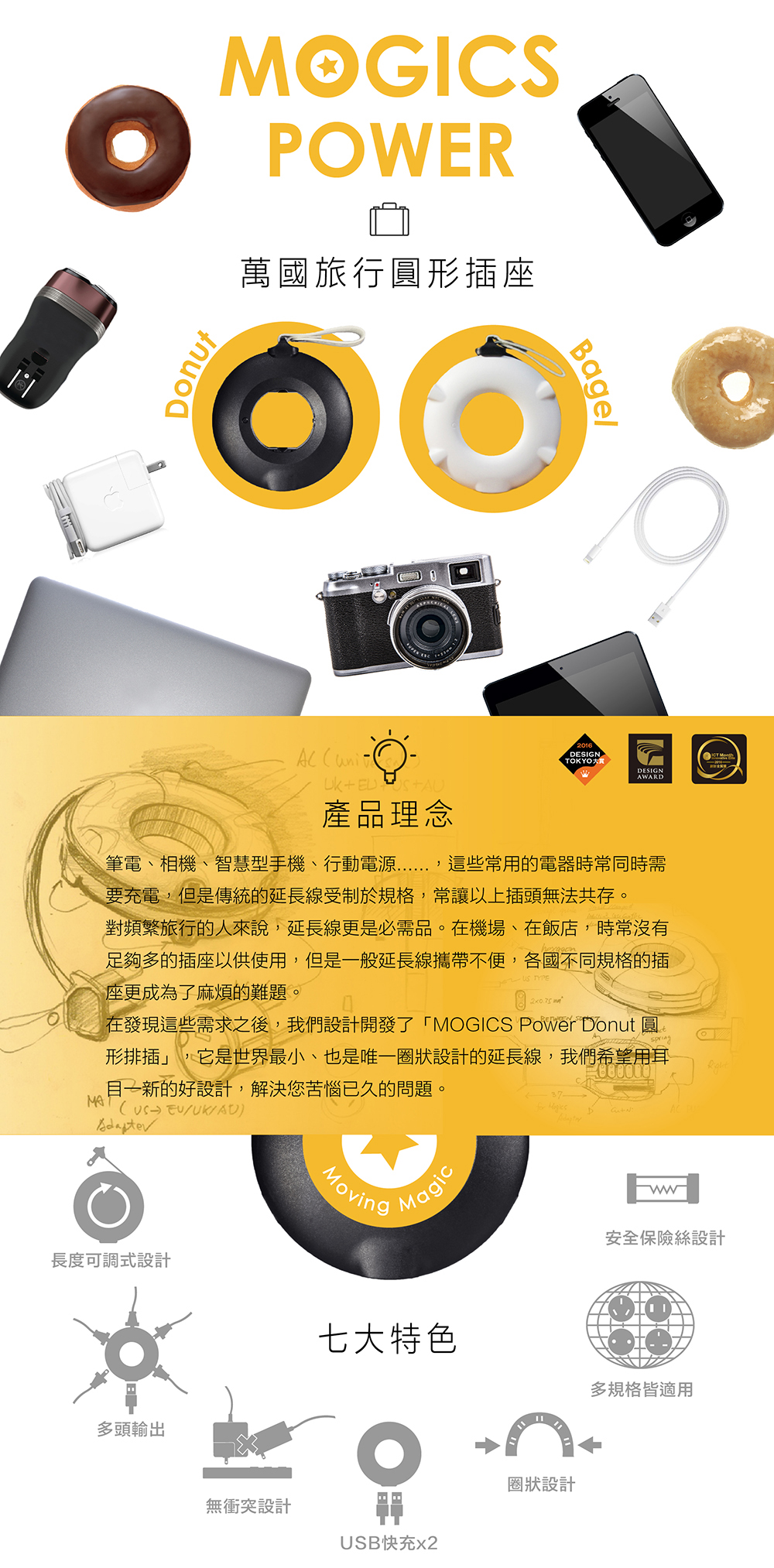 攜帶輕巧方便、樣子可愛、還能免去 3C 產品們流落四方各自充電的窘境(有時候這樣充著充著就忘了拿了QQ),MOGICS Dount 提供了人們對於旅行充電不同的思維和解決方案,以前你可能沒想過自己會帶著顆延長插座出國旅行,但是有了 MOGICS Dount,你「出國必帶」清單中應該就會多了一項喔!