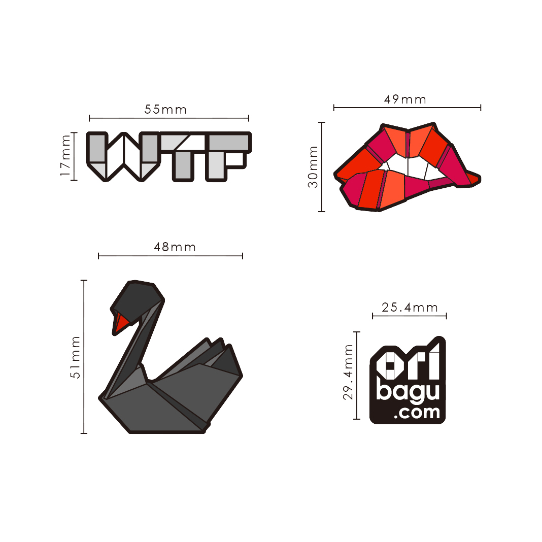 “Ori”是日文origami (折り紙) 的縮寫,直譯便是”摺紙”;”Bagu”是日文發音的”bag”。傳統origami的素材是紙,創造ORIBAGU的設計師採用棉、尼龍、鐵等材質,發展成一系列ORIBAGU摺紙別針組;傳統的摺紙藝術在設計師的巧思轉化下,俐落變身為現代簡約的時尚單品。