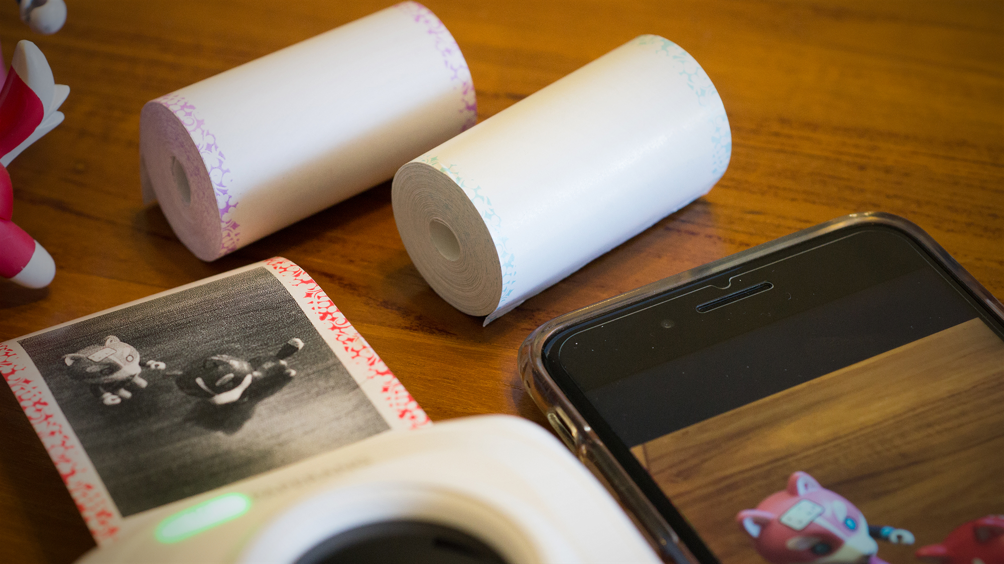 而且感熱紙不只有過去印象中的純白款式,現在更出現了許多選擇!喵喵機的官方感熱紙為日本製造,大小 57 x 30mm,並且依據紙材、影像保存期限和花色而有不同,大家可依據自身的需求或是和手帳本本的搭配度來做選擇(大編最喜歡花邊感熱紙,真的超美的~很適合用來裝飾手帳)。可能許多人會擔心,利用感熱紙所列印出的內容,會隨著時間而逐漸褪色消失的問題。但其實在目前的技術近進步,官方特別訂製的感熱紙已經可達10年保存期間,與其擔心顏色褪掉,可能更需要擔心把本本搞丟,不知道塞哪裡的問題啊~(笑)