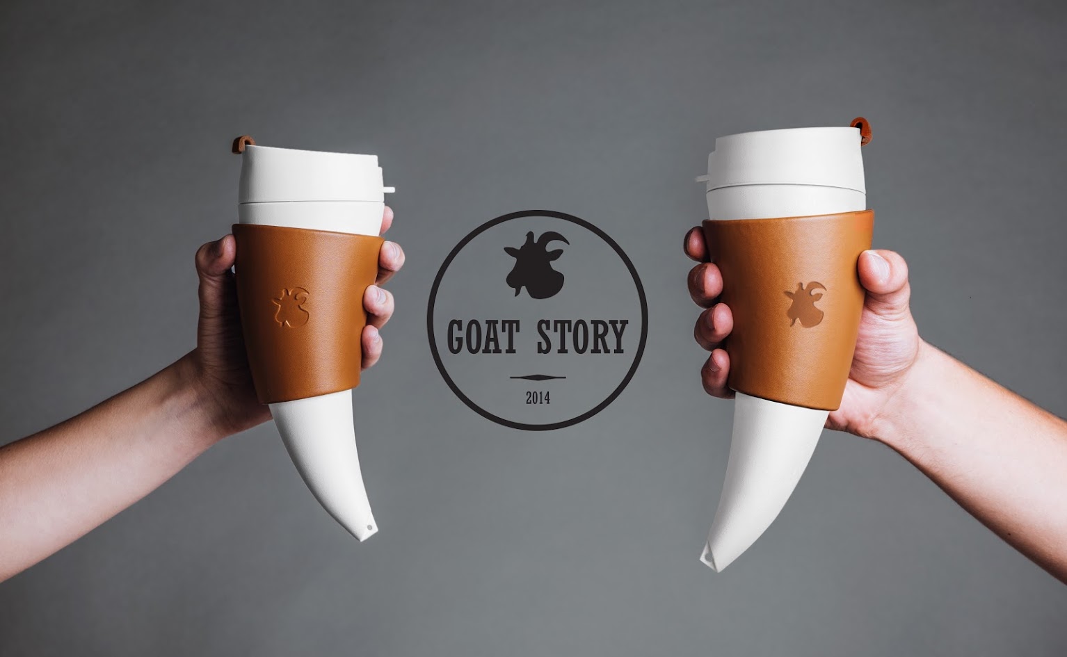 GOAT STORY把牧羊人傳說當設計發想,以山羊角意象為主軸,搭配時尚的皮質,創造出咖啡隨行杯的 新形態GOATMUG 山羊角咖啡杯,一推出就在美國知名募資平台KICKSTARTER獲得廣大的迴響,短時間內就達到目標,除 了美觀更兼顧了實用性,增添了掛繩及背帶,讓使用者空出雙手,騎車更安全,操控智慧裝置更便利,時尚杯套也是杯 架,放在任何平面都不是問題,唯一的問題是「想要哪一款?」