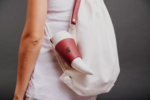 另外不含 BPA (酚甲烷,又稱雙酚A)這種對人體有害的物質也是羊角杯一直強調的特色,畢竟大多的咖啡愛好者都是利用隨身瓶來裝熱的咖啡,設計團隊希望喝的美味,同時也要喝的健康。再加上多功能的吊環與背帶,可以讓使用者輕鬆的把它帶出門,享受所有人的目光,情境照片好像真的有點帥啊~