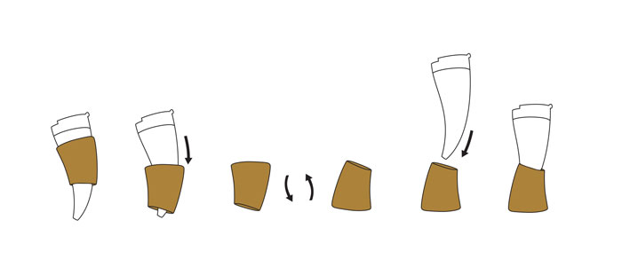 至於另外一個想問的問題,當然是這造型應該很難洗吧?關於這點,設計師用了剖面圖來幫大家解答,羊角杯裡頭的空間並未像外型那樣尖銳,因此可讓大多數的杯子專用刷具進到裡頭,大幅減少藏汙納垢的機會。