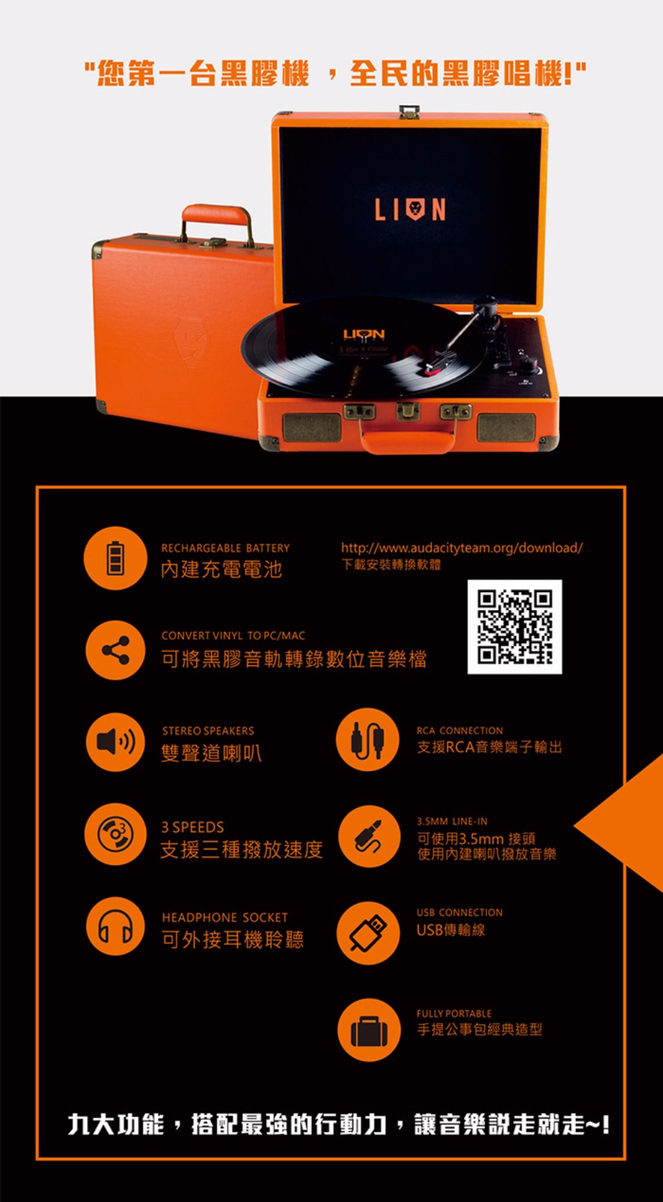 LION限量搖滾 黑膠唱機