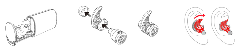 耳機一對、充電盒、充電線、COMPLY 耳塞*3副、橡膠耳塞*3副、耳勾*3副、說明書