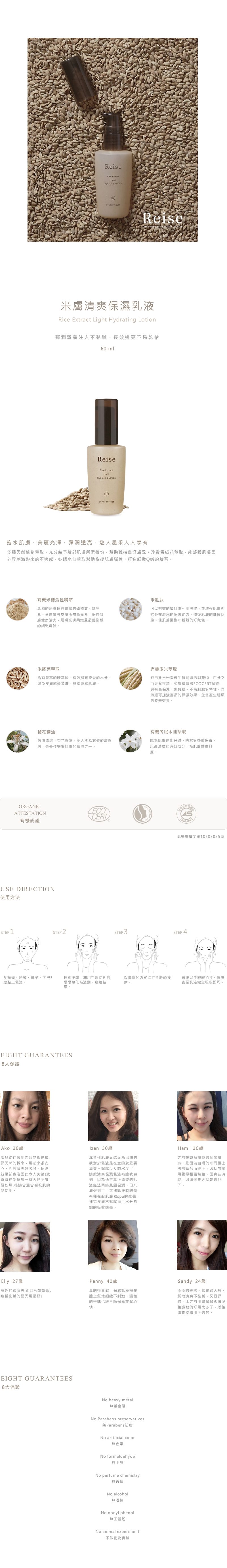 [Reise] is not just a skincare brand but has more to offer than excellent quality. The true meaning behind [Reise] is deeply related to our love to Taiwan. The beauty of life is all God's creation coexists harmoniously, so we believe products which respect the nature bring entirely satisfaction. Action speaks louder than words, as a green skincare brand, [Reise] takes real action to show our gratitude, cherish and respect to this land, and inspires people who also love this land to easily incorporate green ideas into daily life.