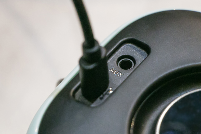 USB 傳輸孔和 AUX 外接音源孔,都藏在背後~