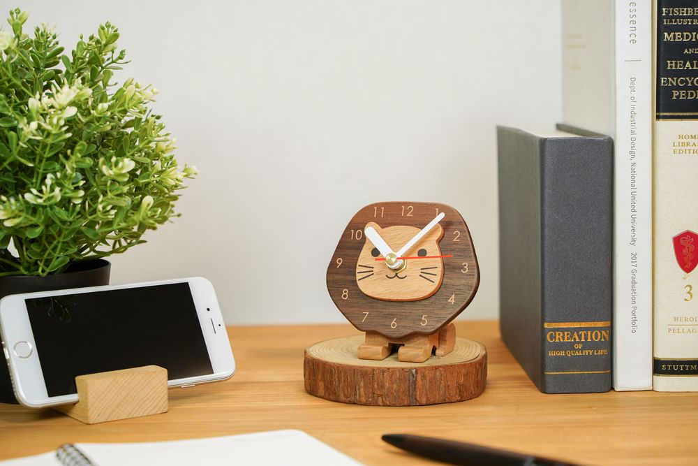 非洲大草原上,勇猛的獅子正和入侵者正面交峰,努力的守護著牠的家園。現在,兇猛的萬獸之王化身為小時計,時時刻刻陪在你的身旁,保護你的安全。P.S.木匠兄妹使用的機芯為台灣製造,強調靜音。並不干擾你的睡眠,讓你有個好夢喔~