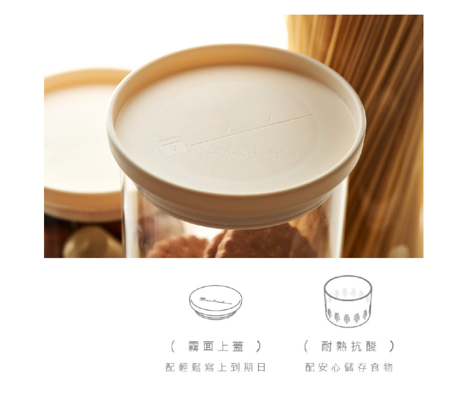 厝內將此記憶融入玻璃密封罐,蓋子上更貼心地提供一處空間讓使用者紀錄食物的保存期限。