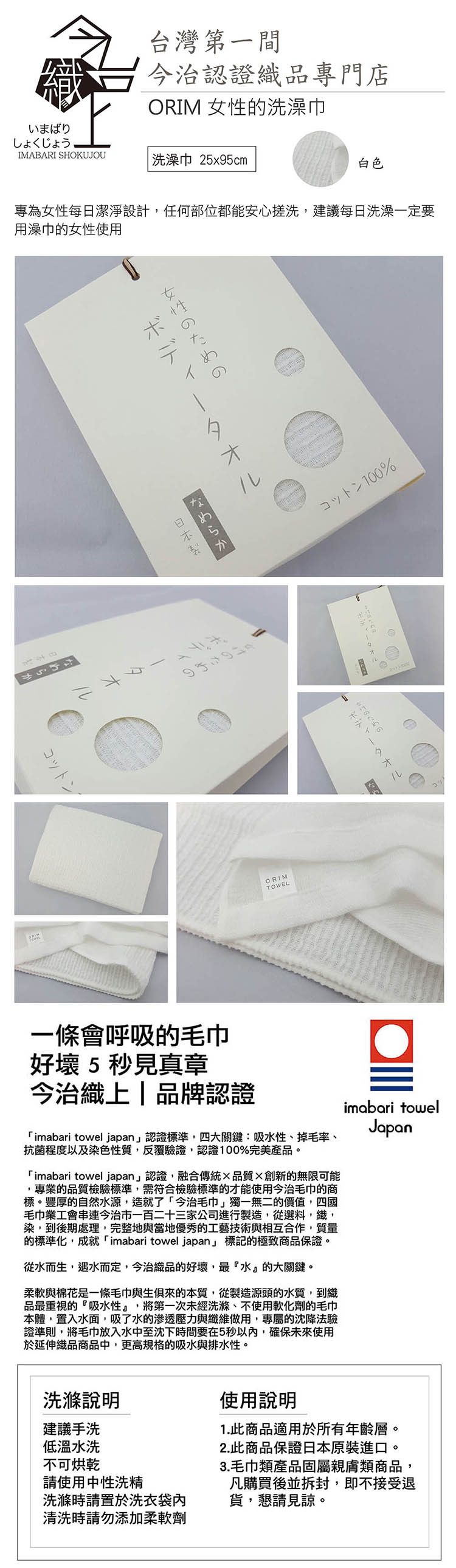 日本今治毛巾 今治認證 ORIM女性的洗澡巾