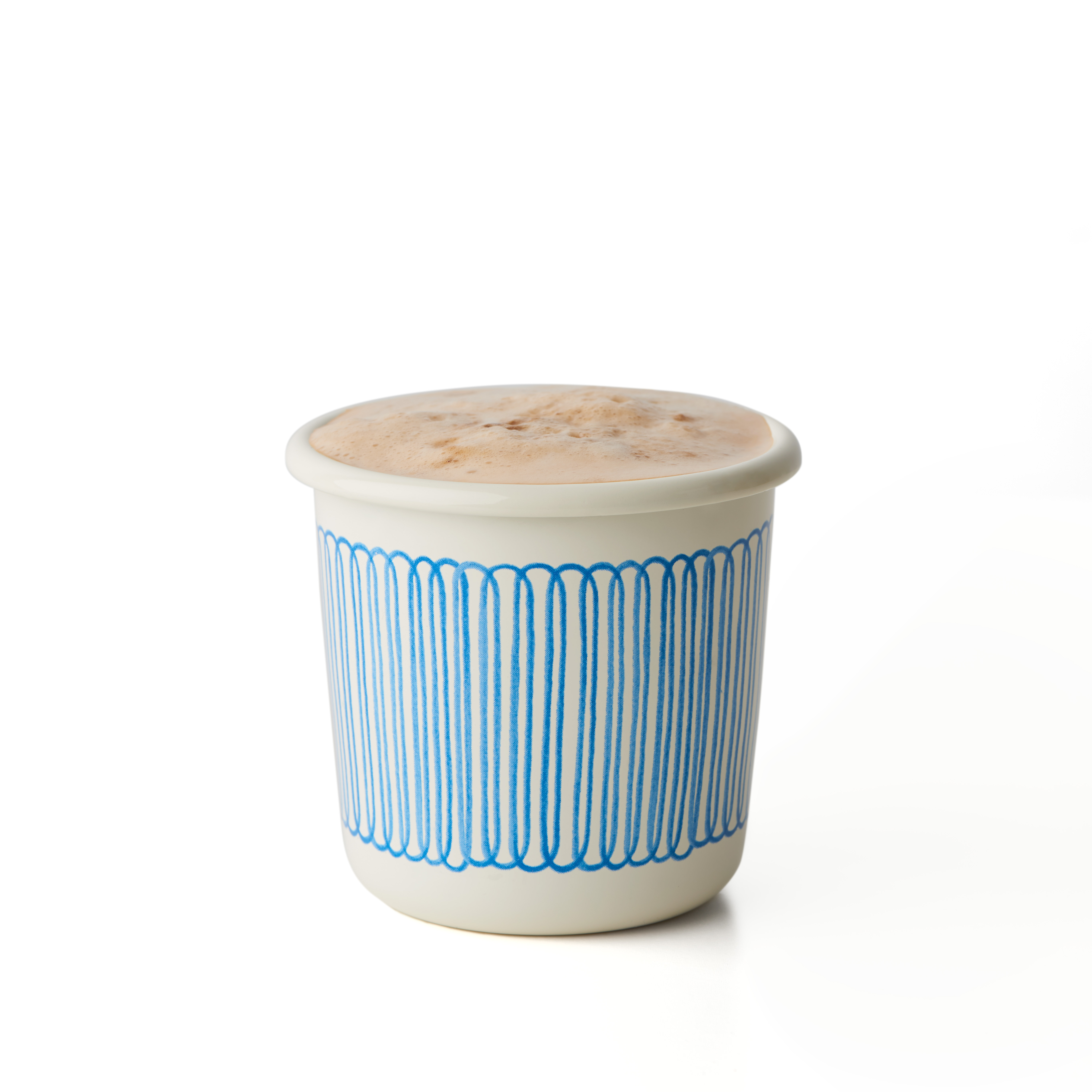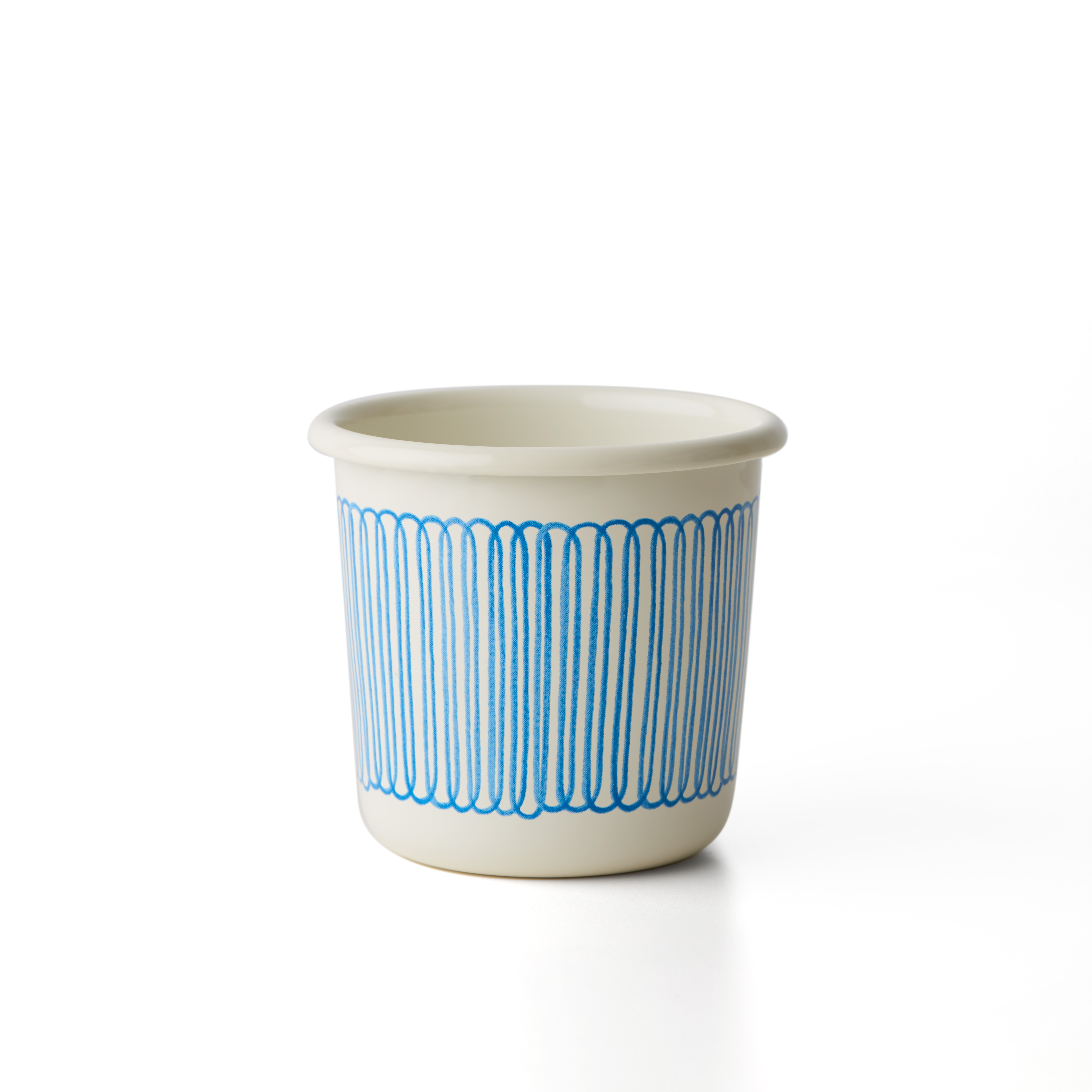 以青花手繪的方式重新詮釋琺瑯杯印象,讓童趣的珐瑯杯也有青花瓷的優雅質感。