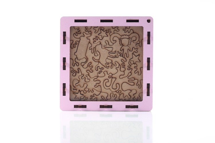 而木拼的靈魂在於材料。我們選用厚達6mm(少部分版本為3mm)的HDF高密度環保木質合成板,高溫高壓的製程讓木板防潑水、防蟲蛀且耐磨。在雷射高溫切割的過程中擁有極低的形變,不但留存圖面的原汁原味,也讓結構更加牢固。厚度更讓每個拼片質感大增,甚至可以輕鬆的個別站立,讓每個拼片都像是有生命的個體跳動穿梭在圖面間。