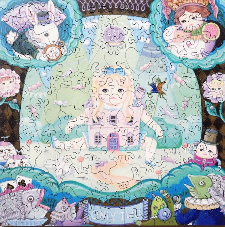 圖像創作:Only Two (林心雁)我喜歡各種可愛事物,也喜歡觀察女孩的種種微妙情緒,因為會哭會生氣會耍心機,使得女孩更有魅力。我畫發現的黑色小玩笑,也畫自己的內心戲,用花俏顏色包裝起來,就是我們之間的小秘密。====【海裡魚木質拼圖特色】====