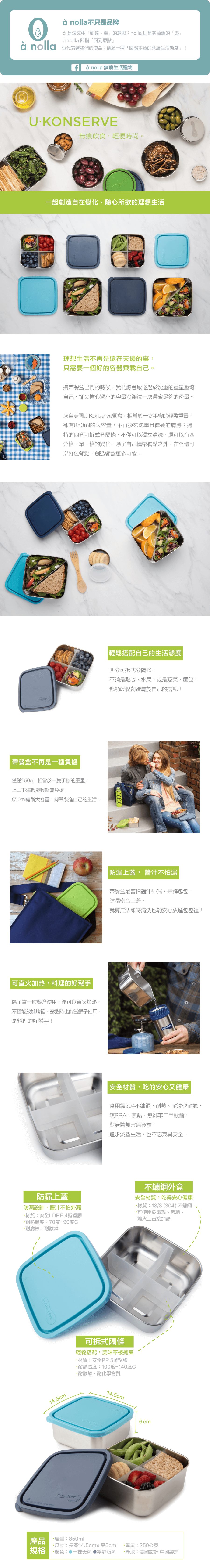 美國U Konserve_中方形不鏽鋼分隔便當盒 四分格可拆(兩色選)