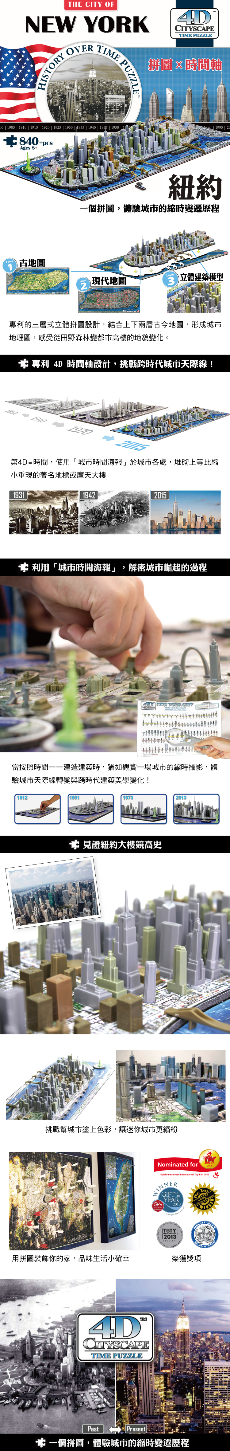 • 創新 4D 拼圖-結合平面2D、立體3D、時間軸4D!