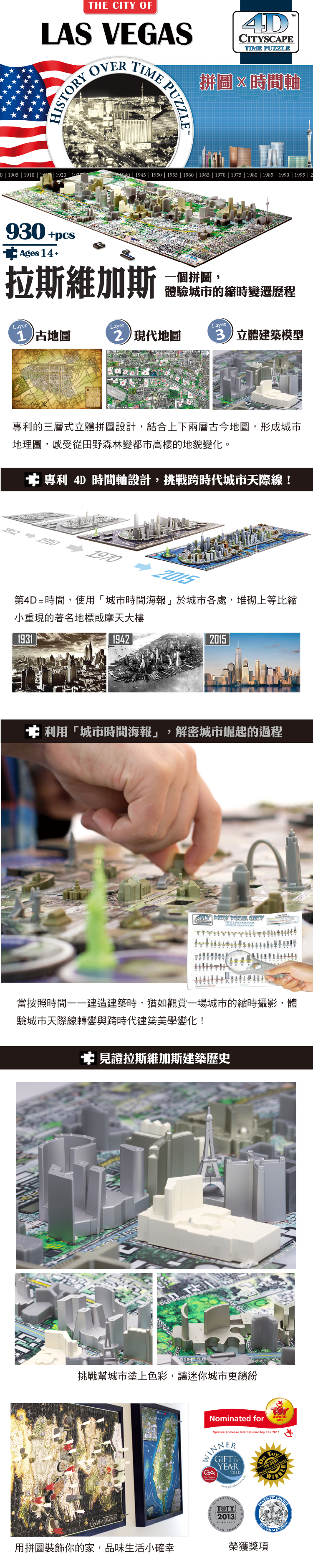 • 創新 4D 拼圖-結合平面2D、立體3D、時間軸4D!