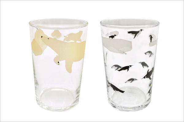 將精緻可愛的北極熊和企鵝分別轉印於玻璃杯上