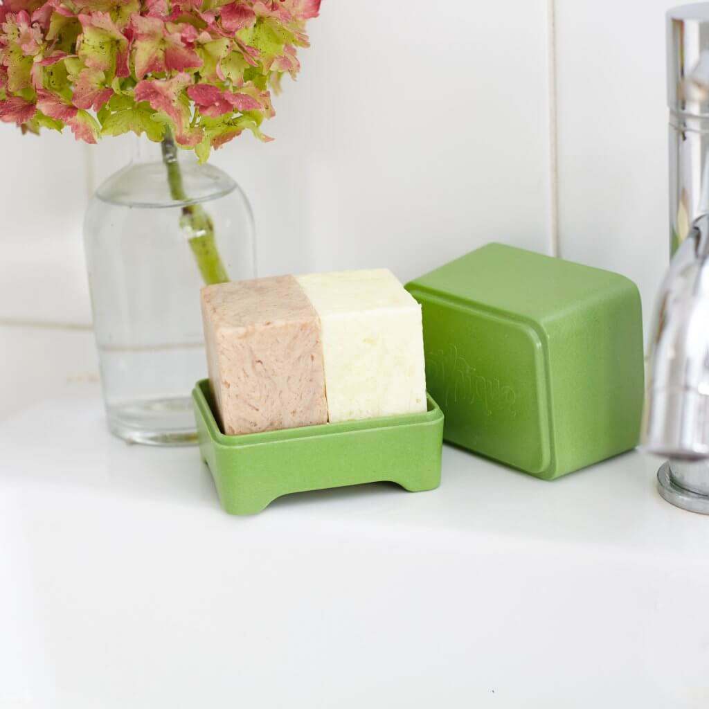 由竹子、甘蔗製成的專用收納盒,使用期限過後可完全堆肥處理。 放置在浴室裡可以讓洗髮餅乾燥、透氣,增加使用期限。 獨特的設計可一次放入一塊洗髮餅與一塊潤髮餅,洗髮潤髮一盒搞定。