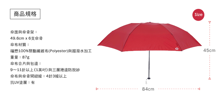 尺寸:.傘面與傘骨架:49.6cm x 6支傘骨
