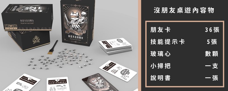 為了配合這次沒朋友桌遊的主題,我們尋尋覓覓找到了工廠配合,製作一顆顆晶瑩剔透保證怎麼摔都不會碎的玻璃愛心,來作為這次桌遊的指示物,另外搭配小掃帚一隻,掃你滿地的玻璃心。