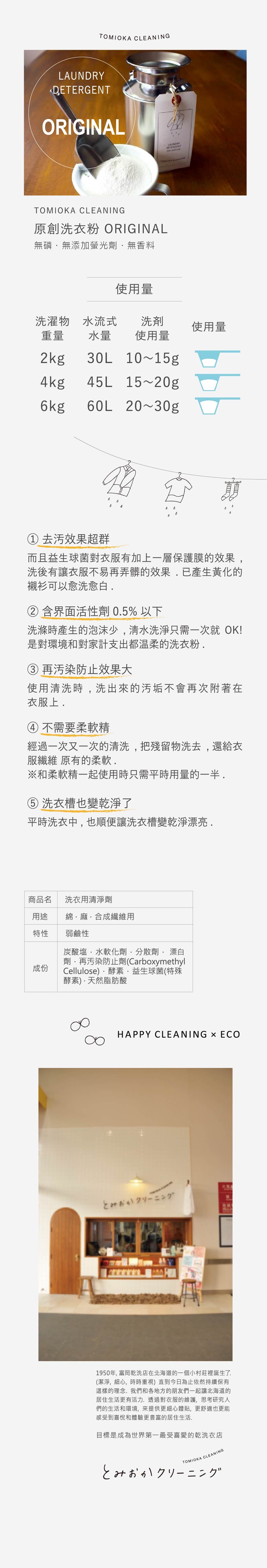 - TOMIOKA 洗衣粉不會起泡,本洗衣粉為濃縮型,請參考建議酌量使用。