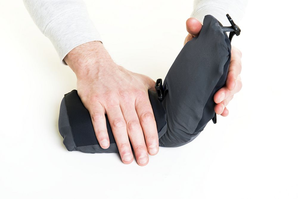除了這三大用途之外,Omni-Pillow 三用枕還有許多貼心的小設計:側邊口袋可以放進手機與其他小物;也有耳機線可以自由穿梭的孔;兩邊上各有一個小孔可以讓你在坐飛機時固定住毛毯;最棒的是它還有附贈一個防潑水的收納袋,而且整個收起來只有一顆芒果的大小!
